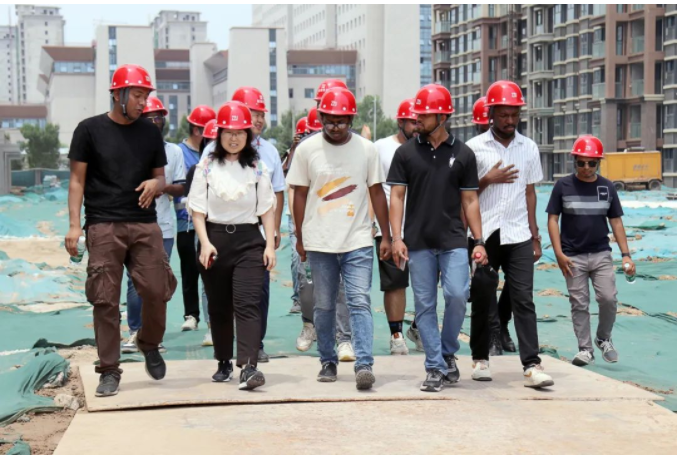 隨后,一行人前往新蒲建設(shè)集團(tuán)省直青年人才公寓永盛苑項(xiàng)目現(xiàn)場(chǎng)參觀,講解員詳細(xì)介紹了項(xiàng)目設(shè)計(jì)、施工工序、裝配式項(xiàng)目施工特點(diǎn)及工程造價(jià)等情況。整個(gè)參觀過(guò)程中,留學(xué)生們表現(xiàn)出強(qiáng)烈的興趣,爭(zhēng)相提問(wèn)并通過(guò)翻譯老師積極互動(dòng)。