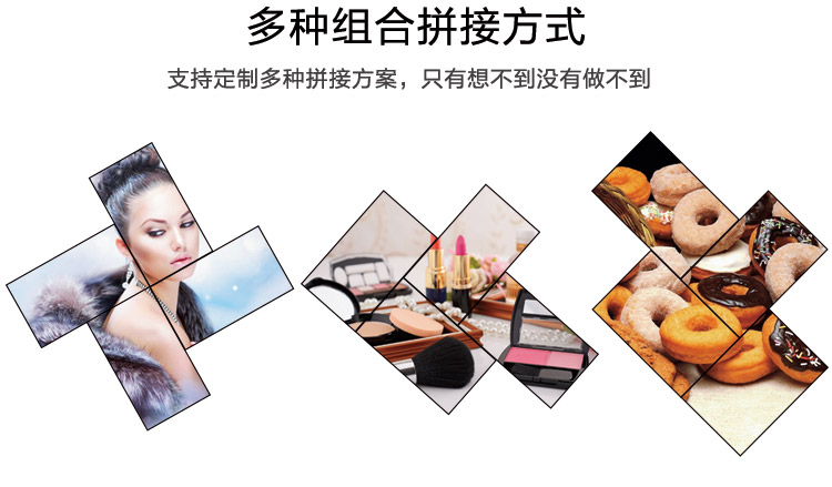 DID異形液晶拼接屏安裝的場(chǎng)所,絕對(duì)能讓消費(fèi)者有更強(qiáng)的視覺(jué)沖擊力,享受更好的消費(fèi)體驗(yàn)。下面就給大家展示下各種異形拼接屏的造型: